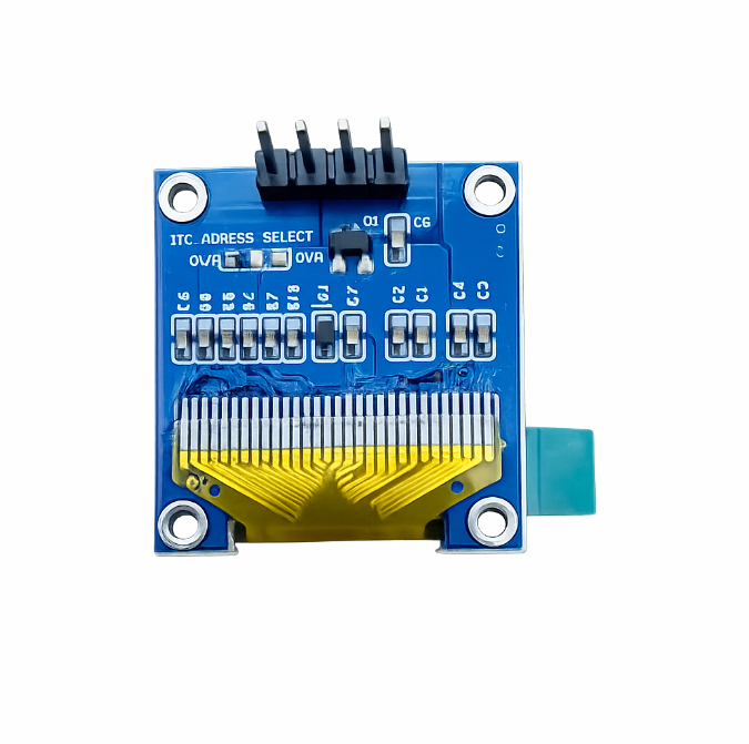 شاشة OLED صغيرة عالية الوضوح مقاس 0.96 بوصة بدقة 128×64، تعمل بدون إضاءة خلفية، مثالية لمشاريع Arduino وRaspberry Pi، مع استهلاك طاقة منخفض جدًا.