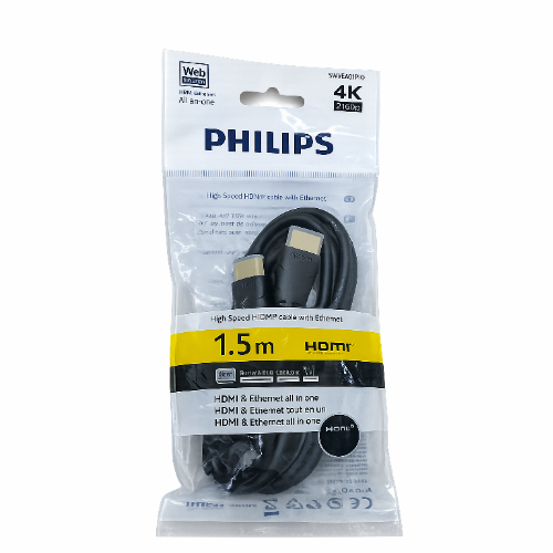 كابل Philips High Speed HDMI with Ethernet يوفر نقلًا عالي الجودة للصوت والصورة بدقة تصل إلى 4K (2160p) مع دعم تقنية 3D.