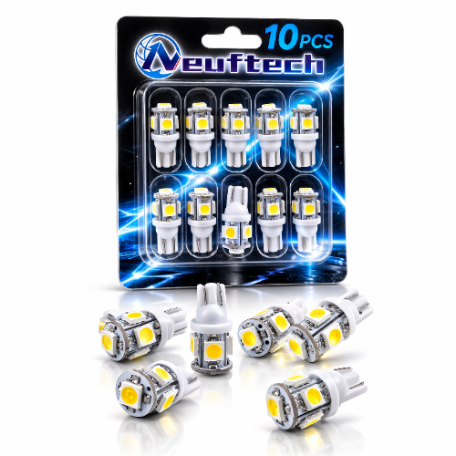 لمبات Neuftech T10 LED مصممة لتوفير إضاءة قوية وواضحة مع استهلاك منخفض للطاقة. كل لمبة تحتوي على 5 شرائح SMD 5050 لإضاءة متوازنة، وتعمل بنظام القطبية (Polarized)، ما يعني أنه في حال عدم الإضاءة يتم قلب اللمبة 180 درجة.