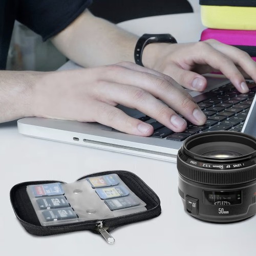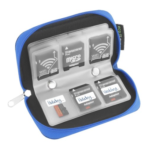 تم تصميم الحافظة لتتسع لما يصل إلى 22 بطاقة ذاكرة مختلفة، مع جيوب شفافة تسمح برؤية البطاقات بسهولة وسرعة الوصول إليها.