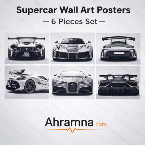 تحتوي المجموعة على 6 لوحات فنية مميزة تعرض أشهر السيارات في العالم مع معلومات الأداء لكل سيارة، مما يمنحها طابعًا أنيقًا يجمع بين الفن والهندسة.